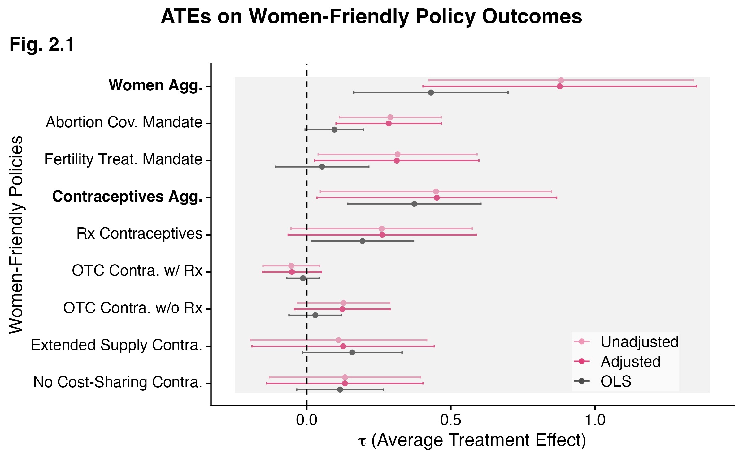After constructing the dataset, we applied causal inference methods to examine whether women’s representation influences the passage of gender-specific healthcare policies. Using a two-way fixed effects model, we estimated the effect of changes in women’s representation on policy adoption across states and over time.